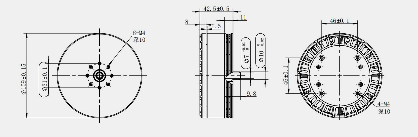 | 85 | 12S-14S | 26.5 | 11-13 | 1.45 | 100 | 15 | φ109*42.5 | φ100*18 | 8- M4*10 | 36" | ||||||||||
